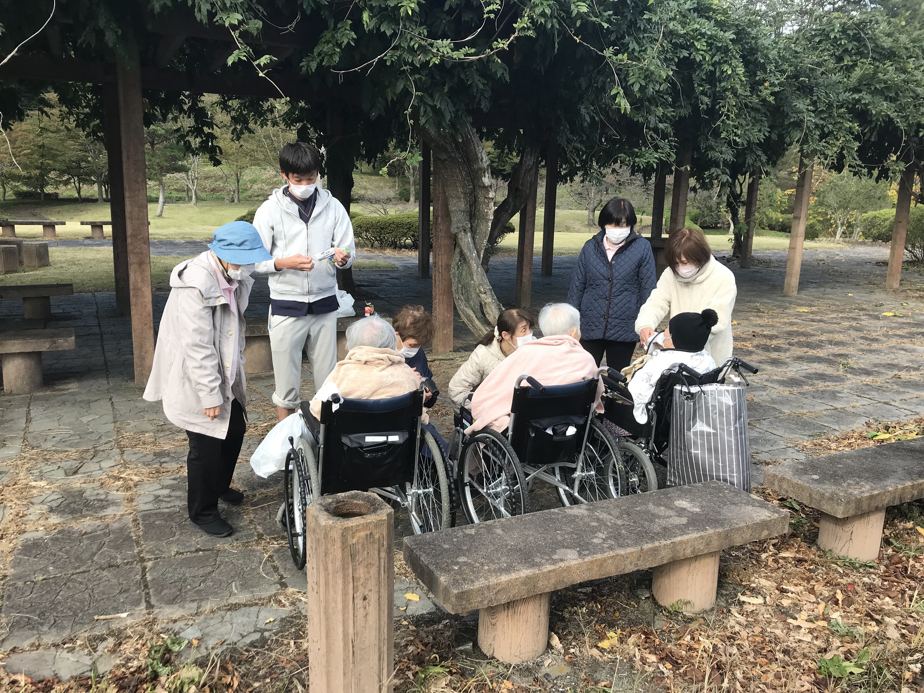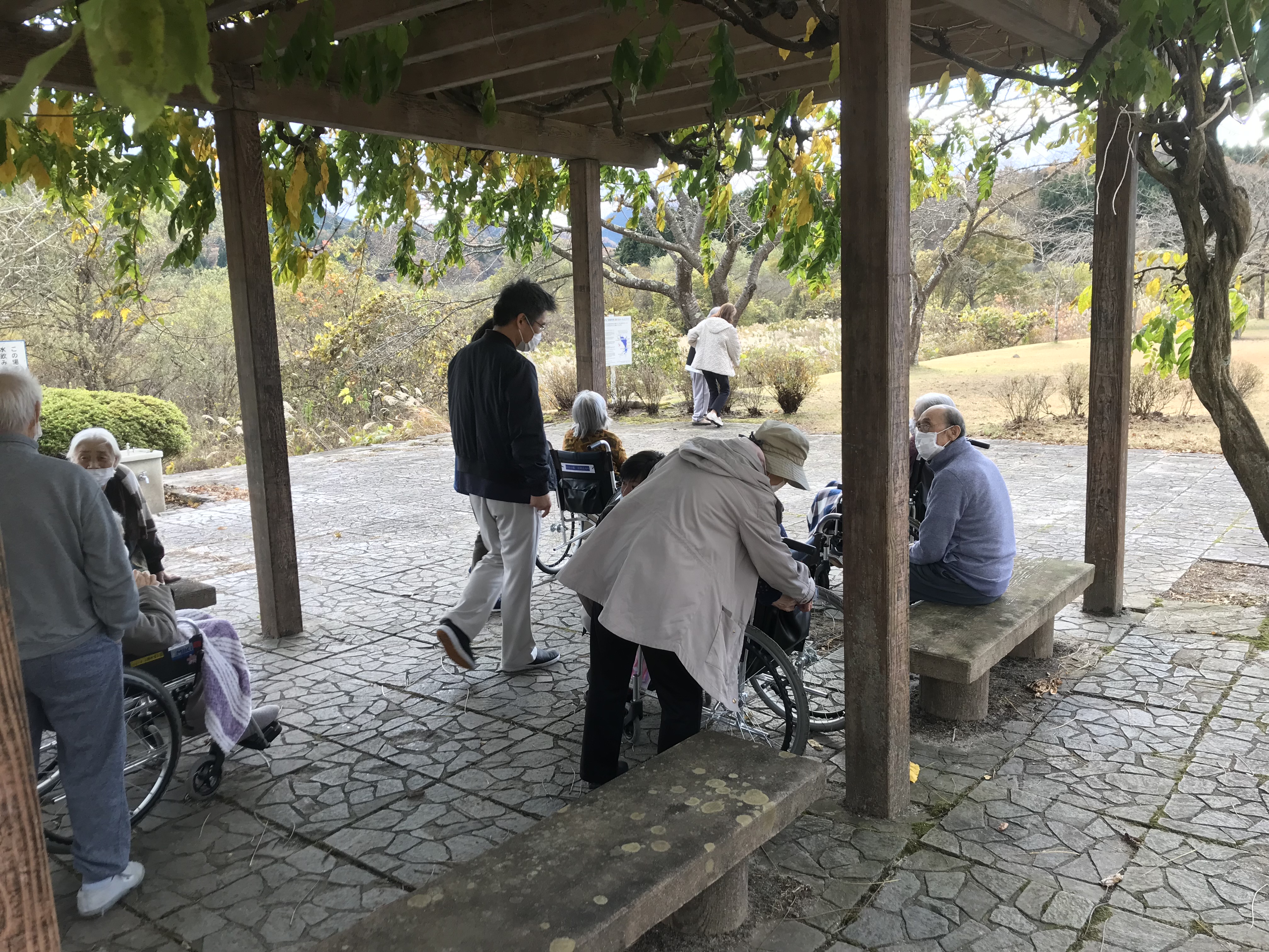 3名の入所者の方と、とみサポ(コーディネーター2名、サポーター3名)、当施設職員3名での交流を行いました。