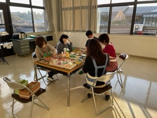 とみサポの方々の協力をいただき、正月飾りの製作を行いました。