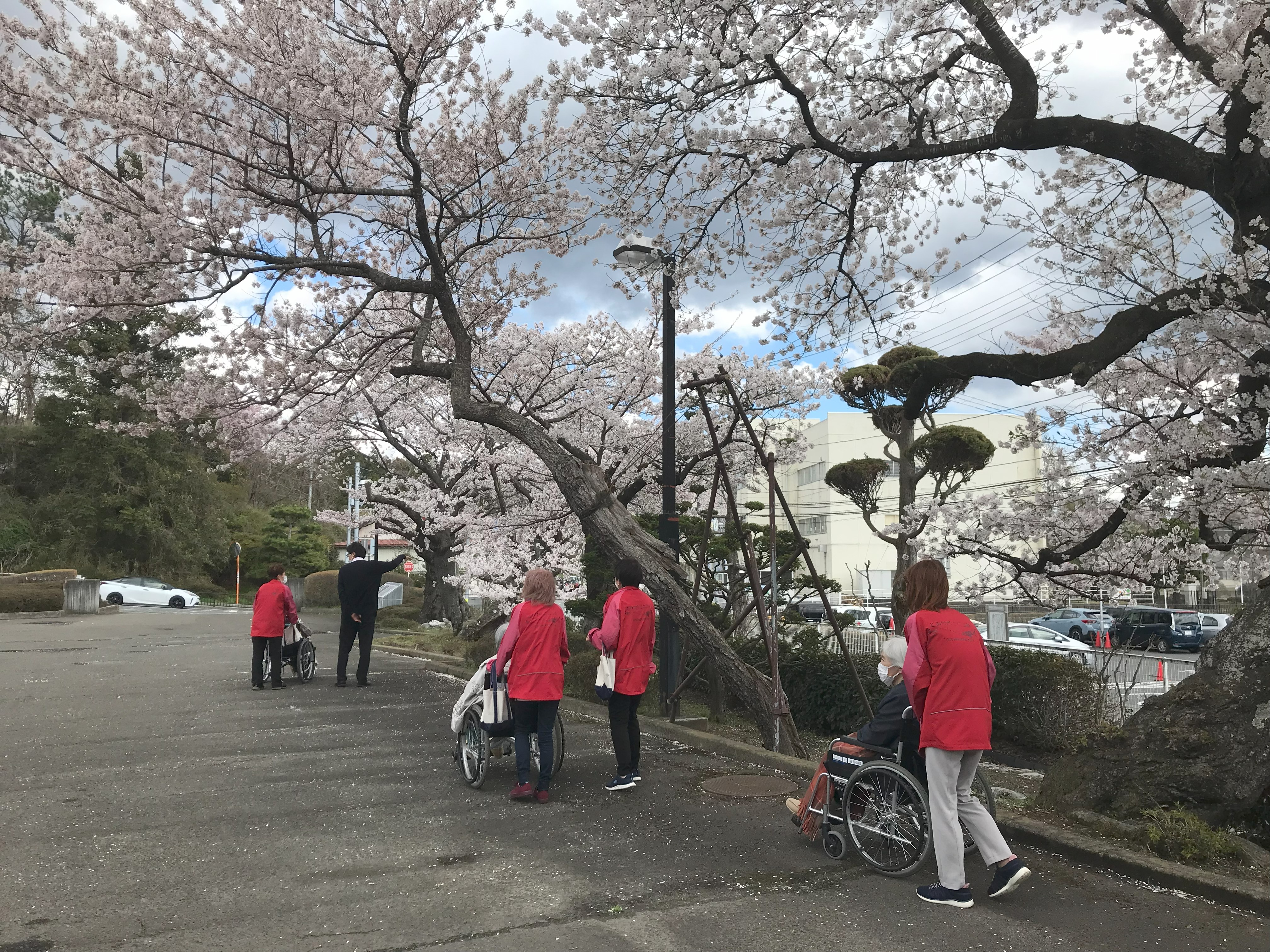 とみさぽの方々と一緒にお花見に行きました。久しぶりの外出と満開の桜を見て、笑顔が多く楽しんでいる様子でした。
