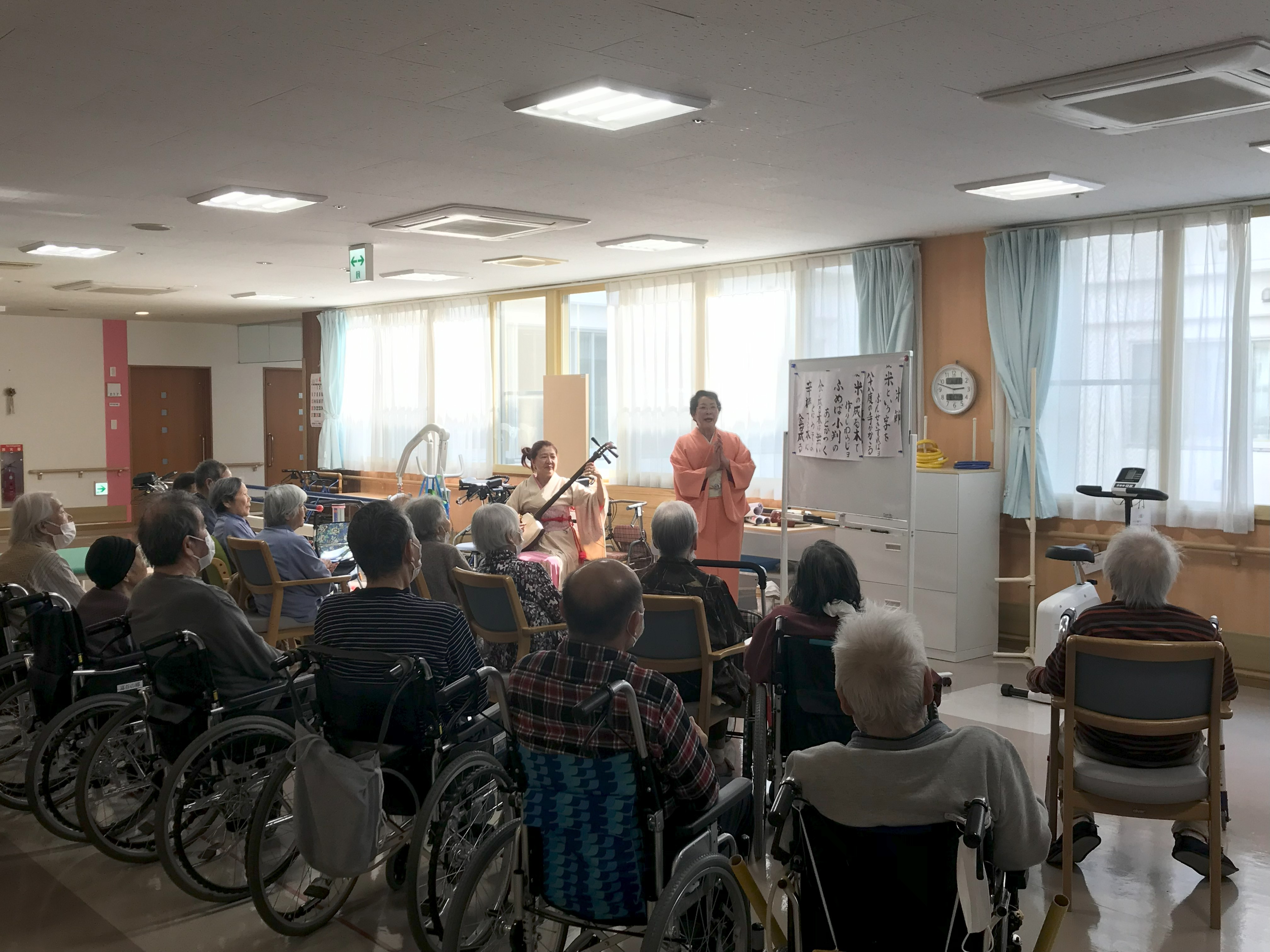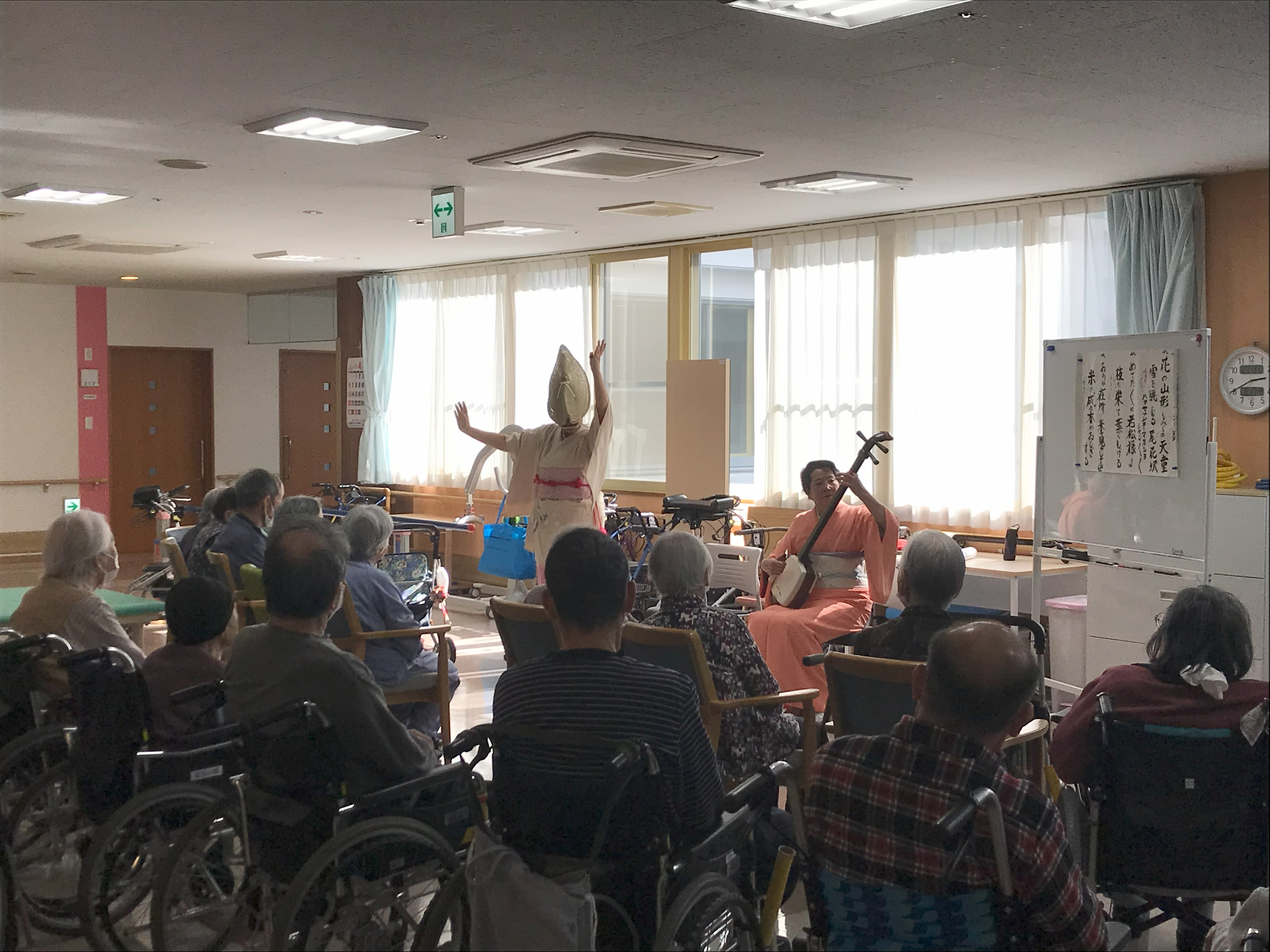 今回、三味線に加えて踊りも披露していただきました。みなさん、口ずさんだり手拍子をして楽しまれておりました。