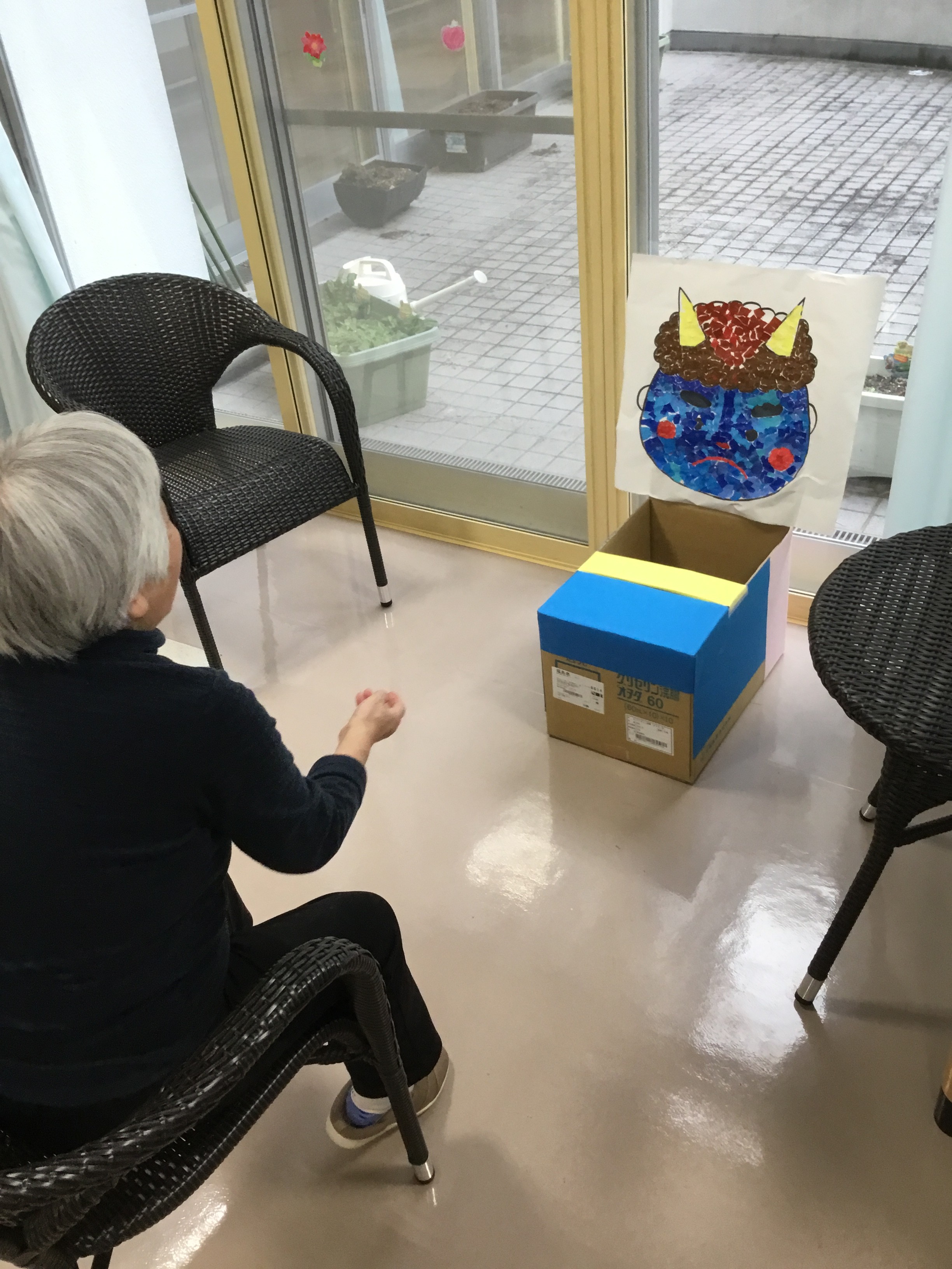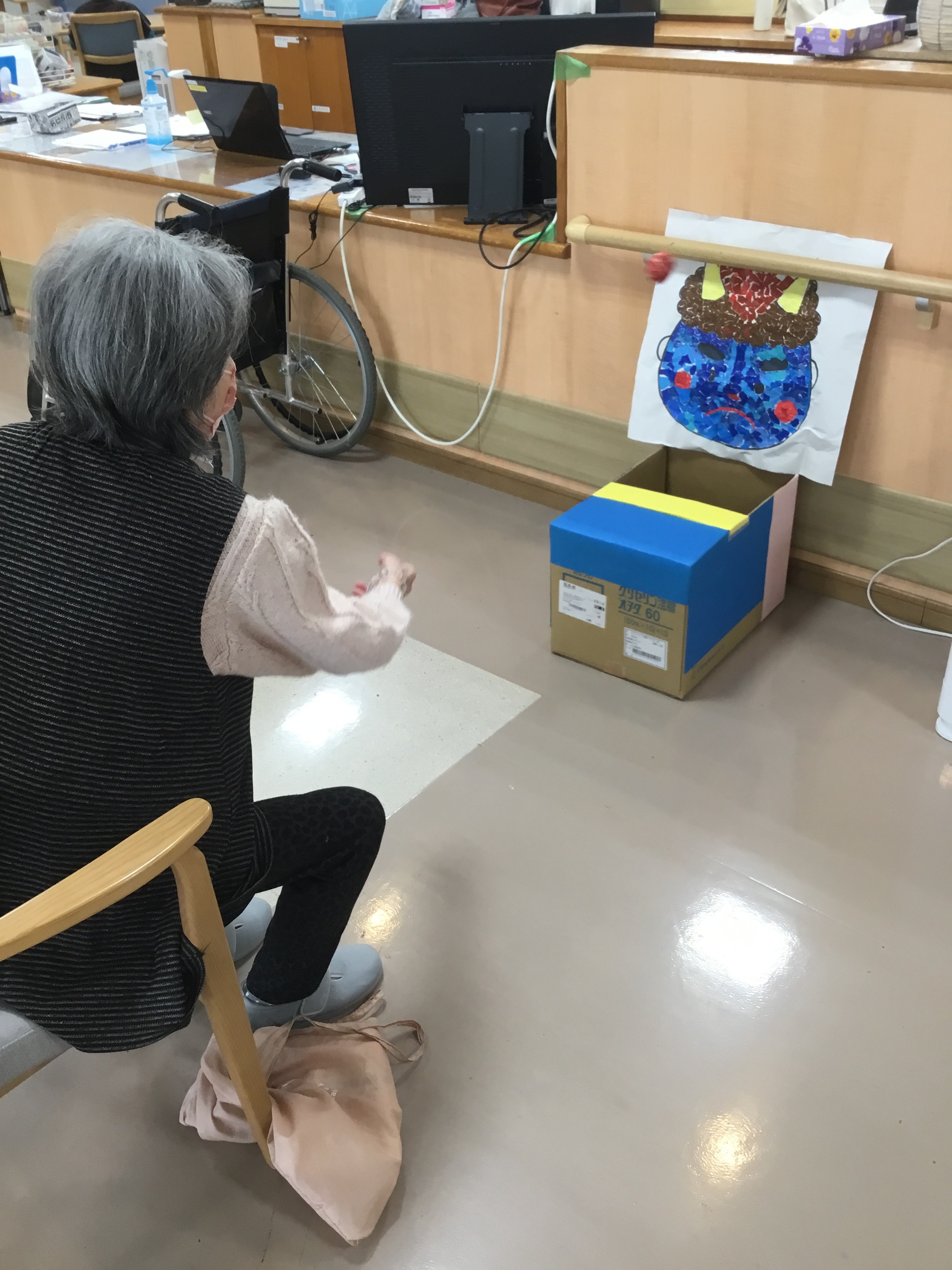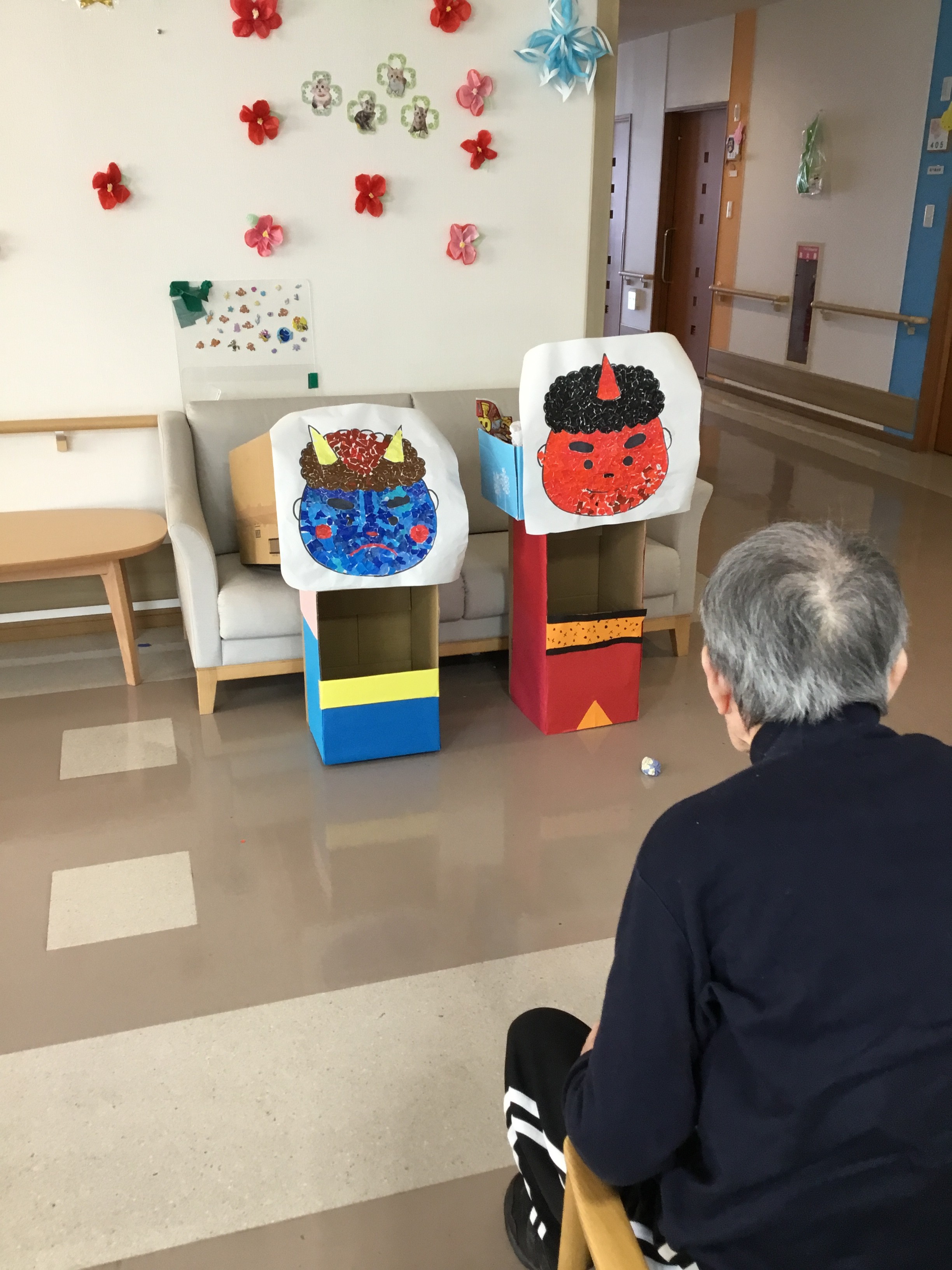 作成して頂いた物を利用し、節分の行事をフロアーで行いました。