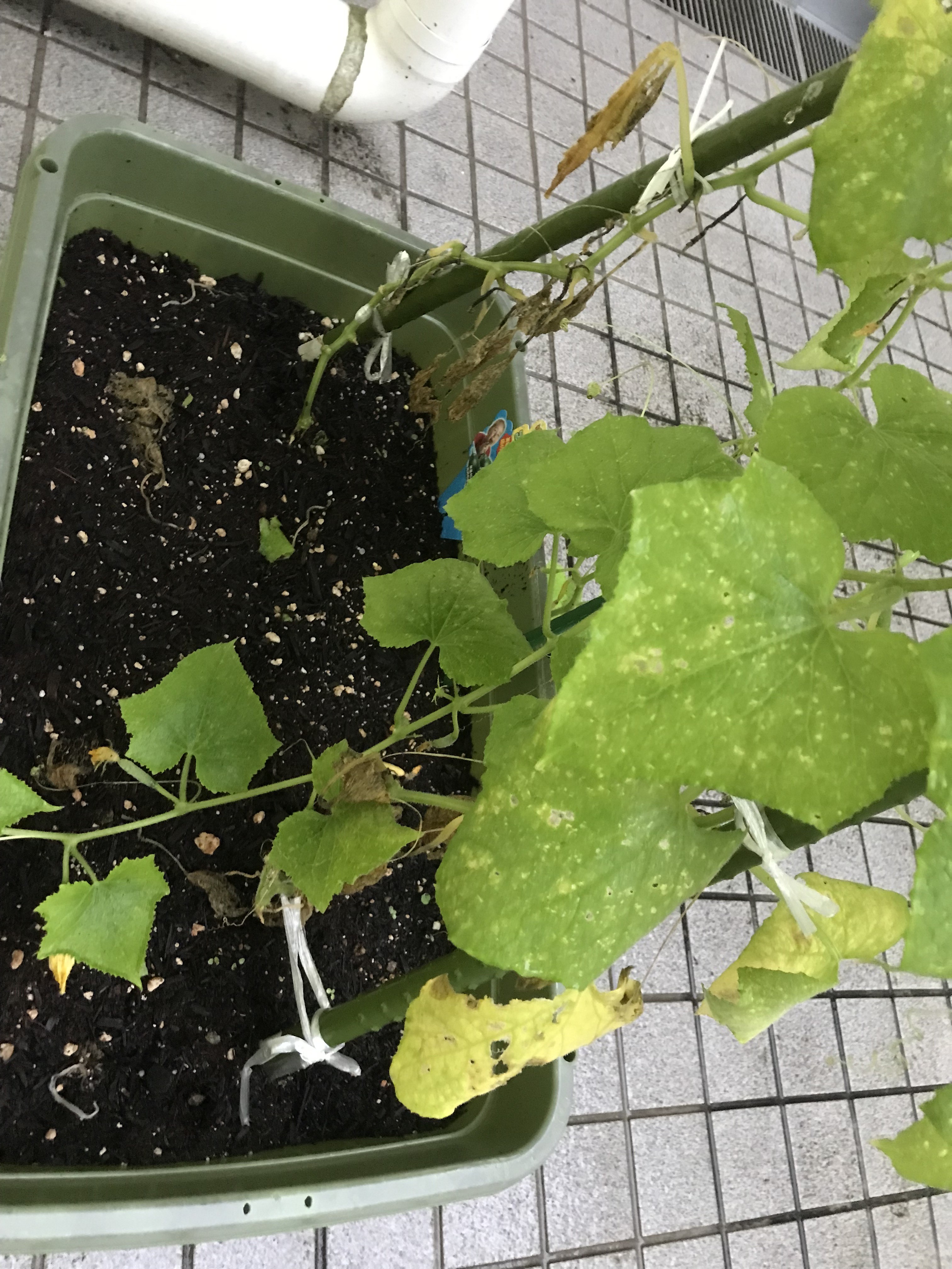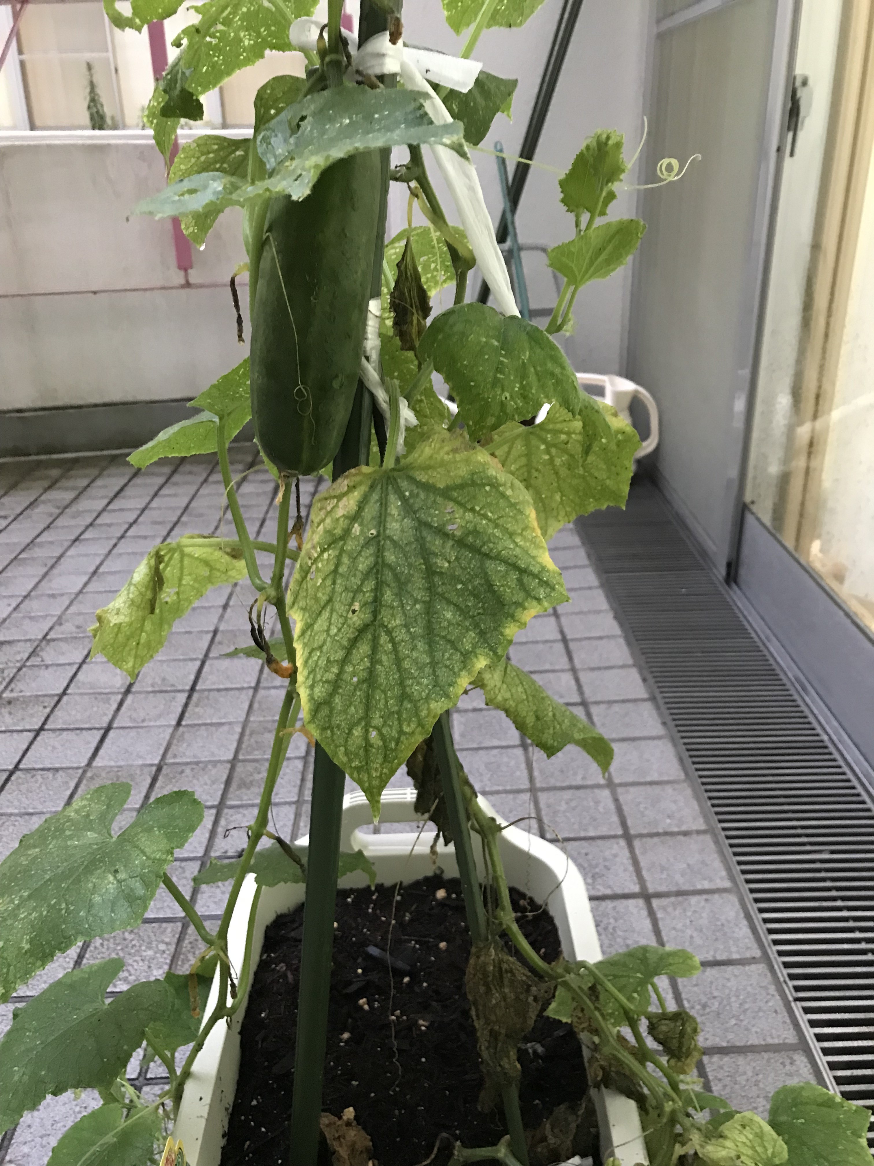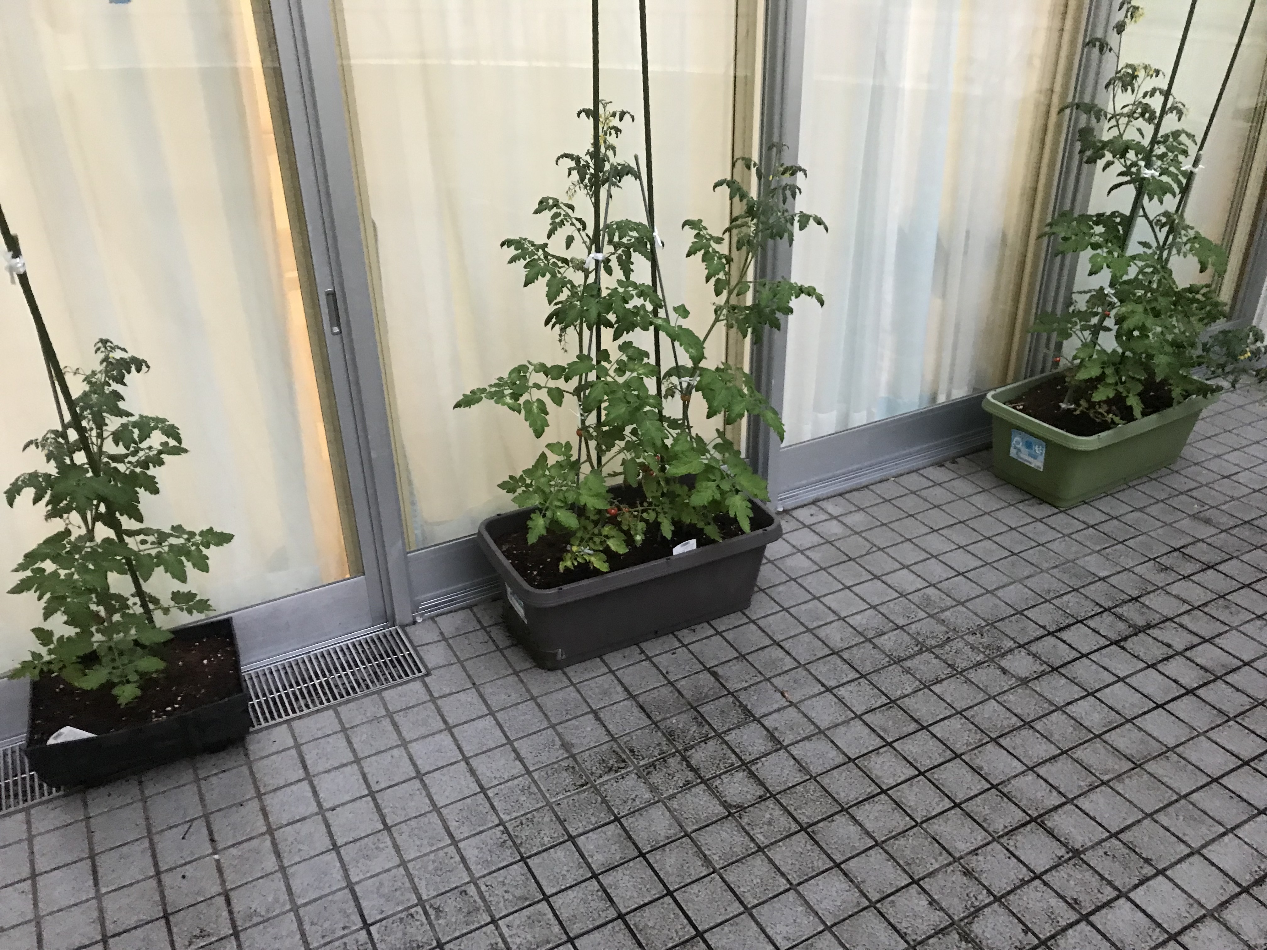 5週間経過しました。トマトもキュウリも順調に育ち、キュウリは10cm程度になりました。