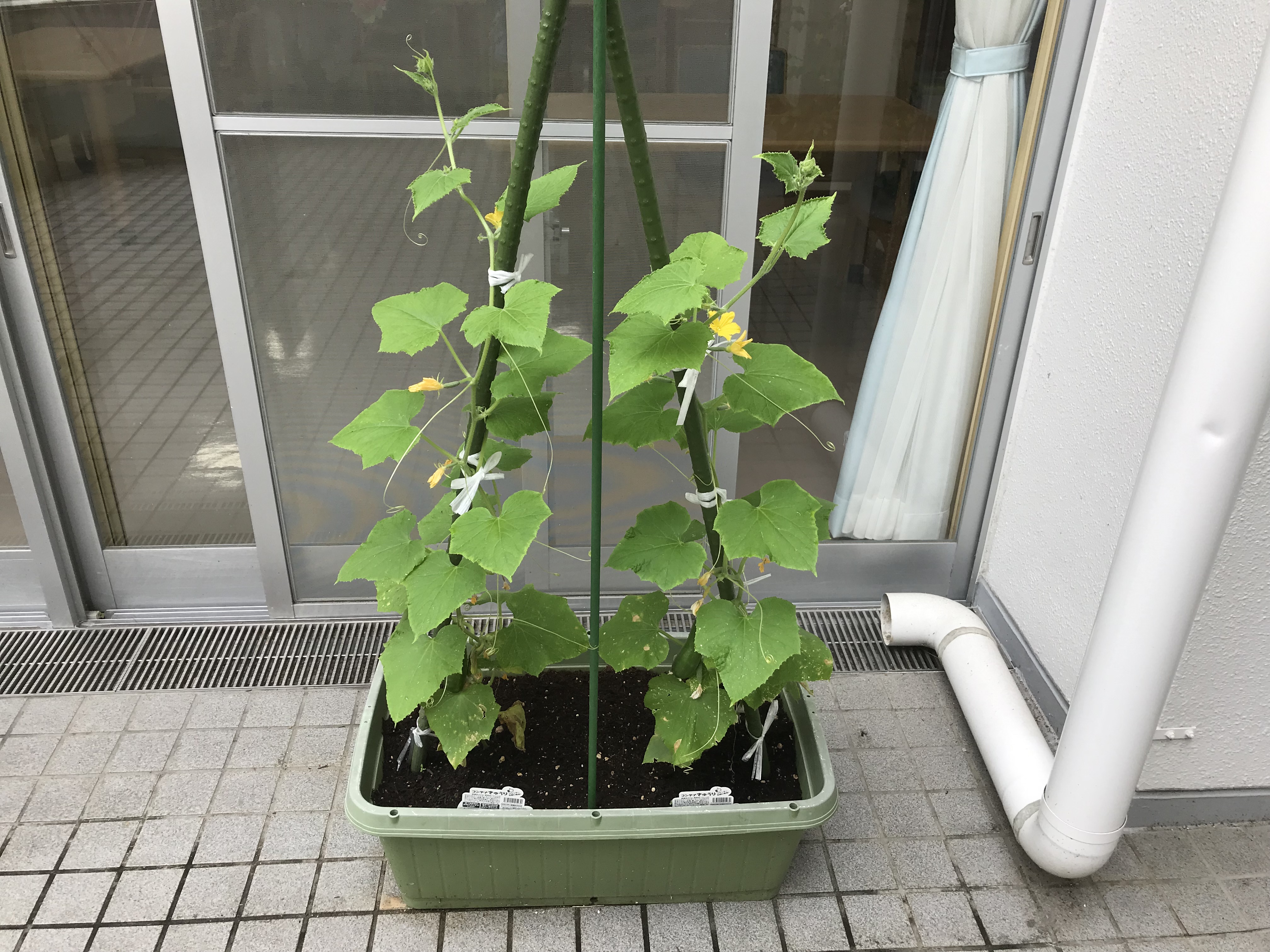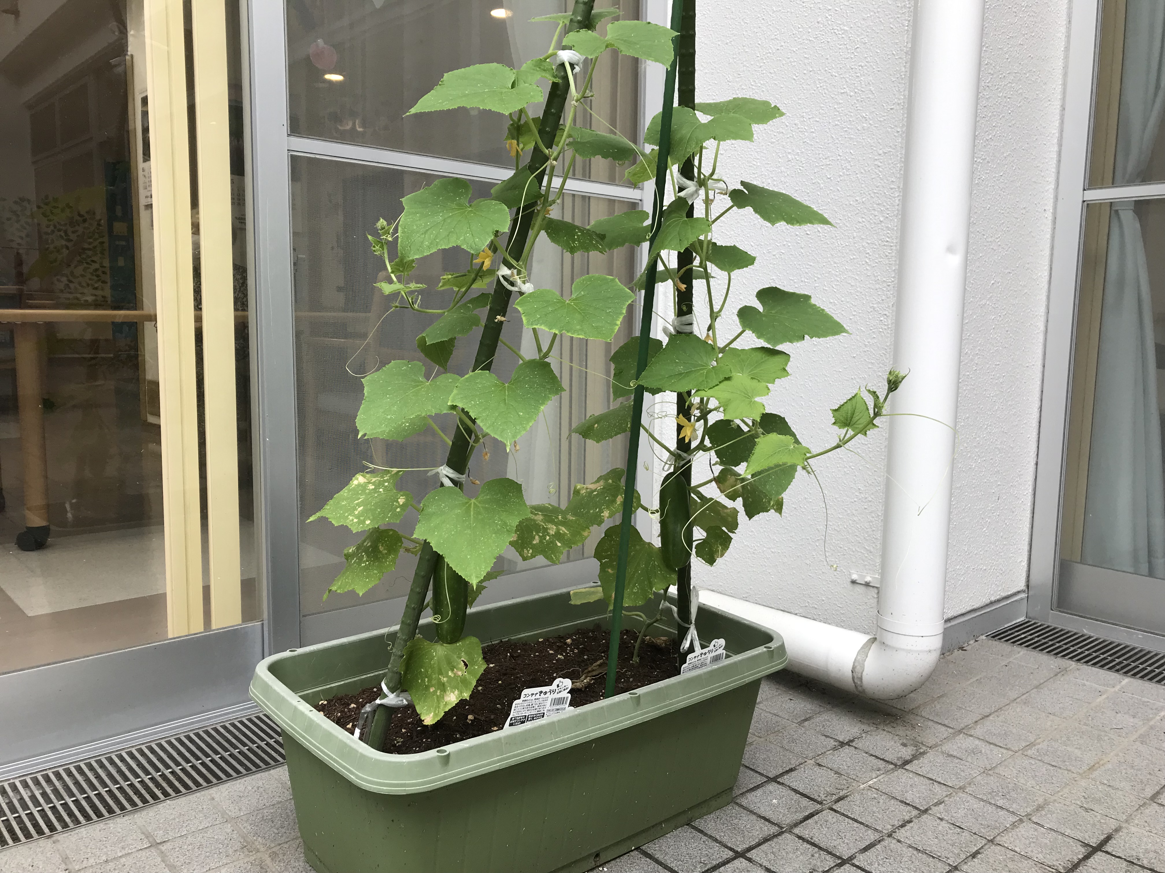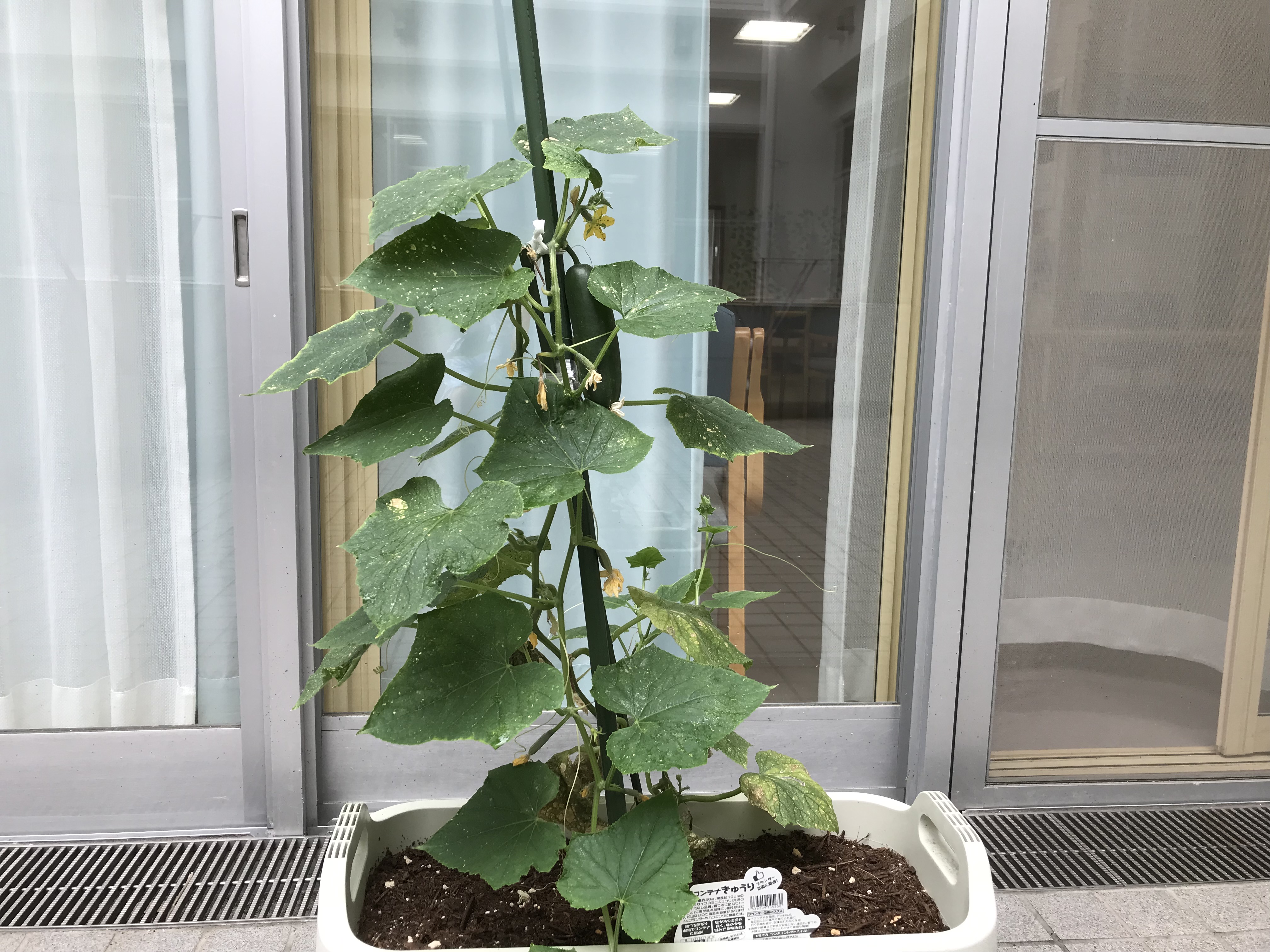 キュウリも順調に成長しています。先週5本収穫し、利用者の方と美味しく頂きました。