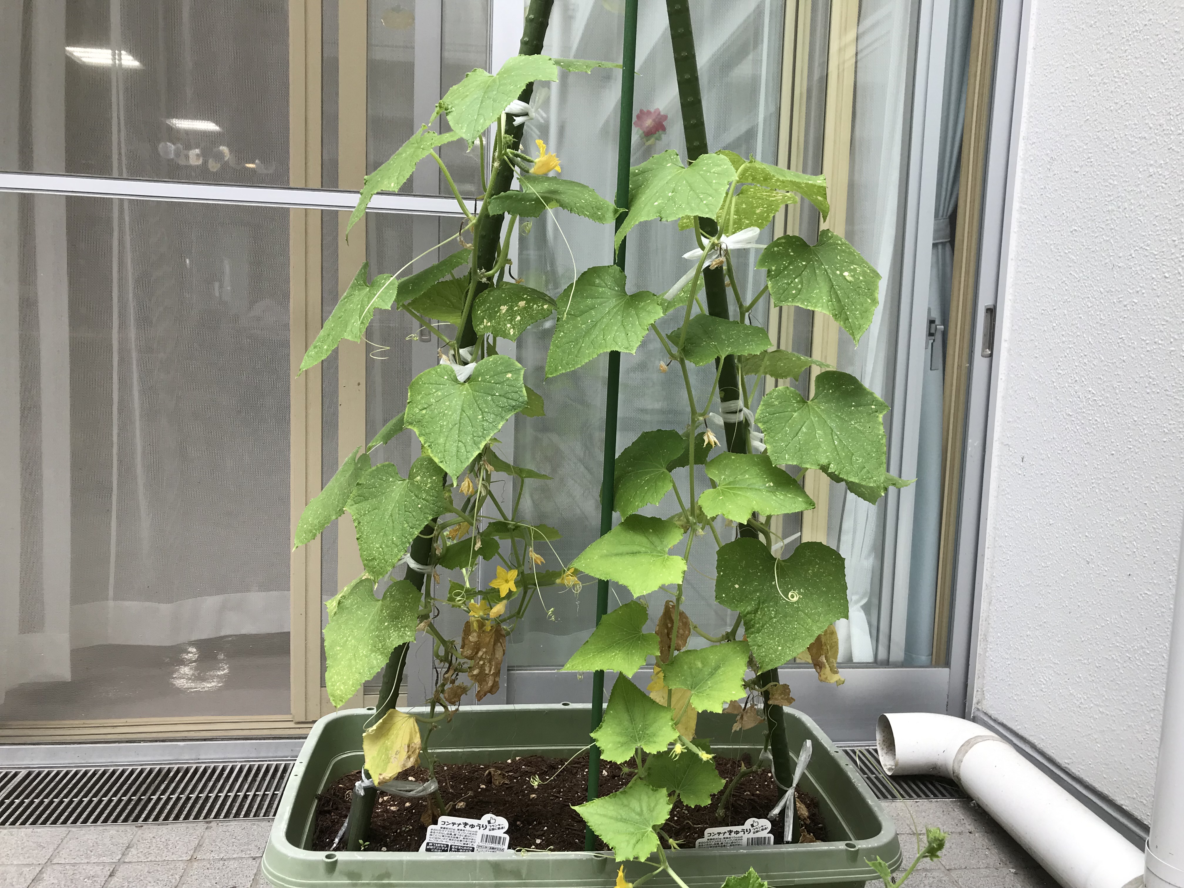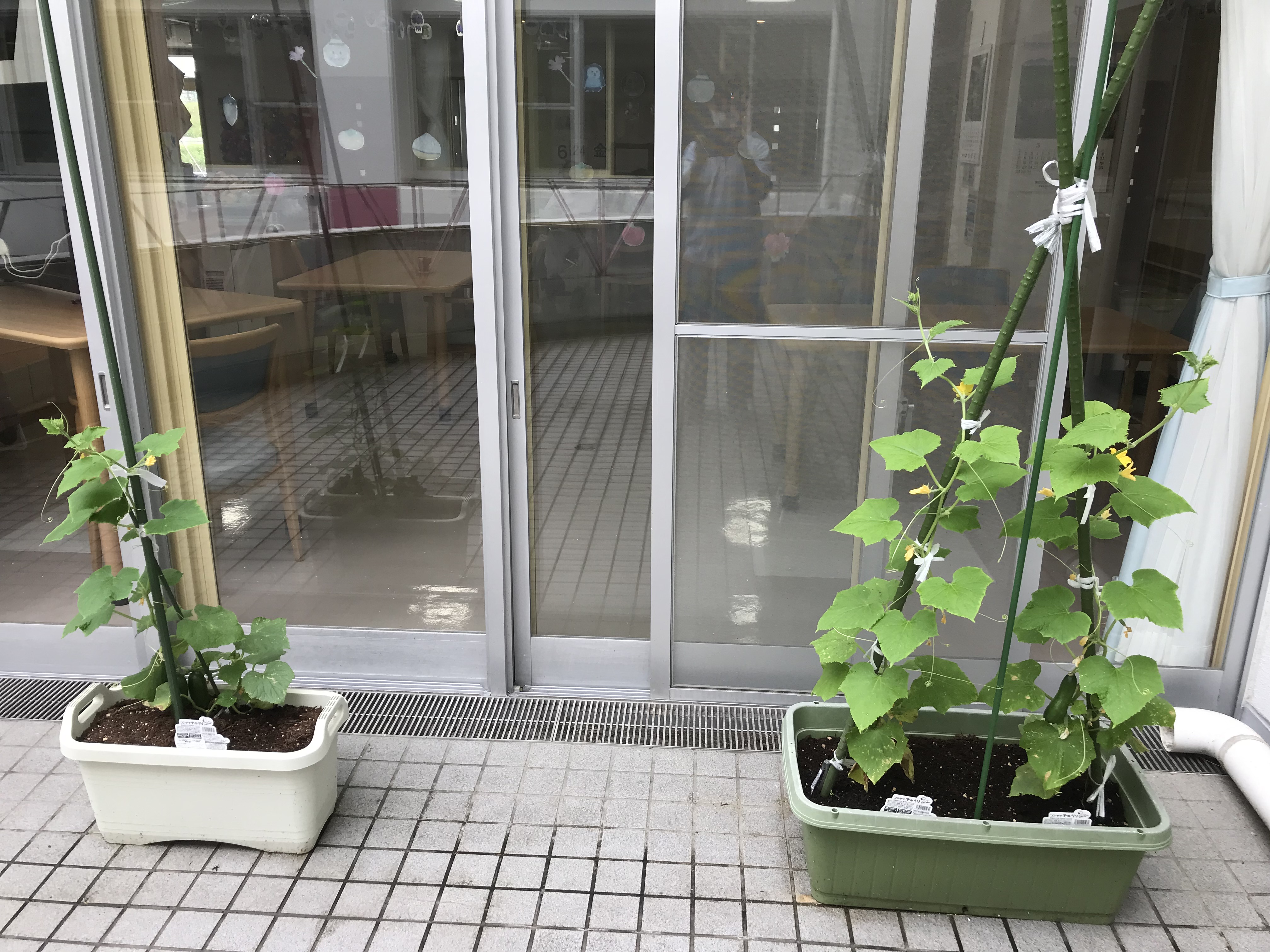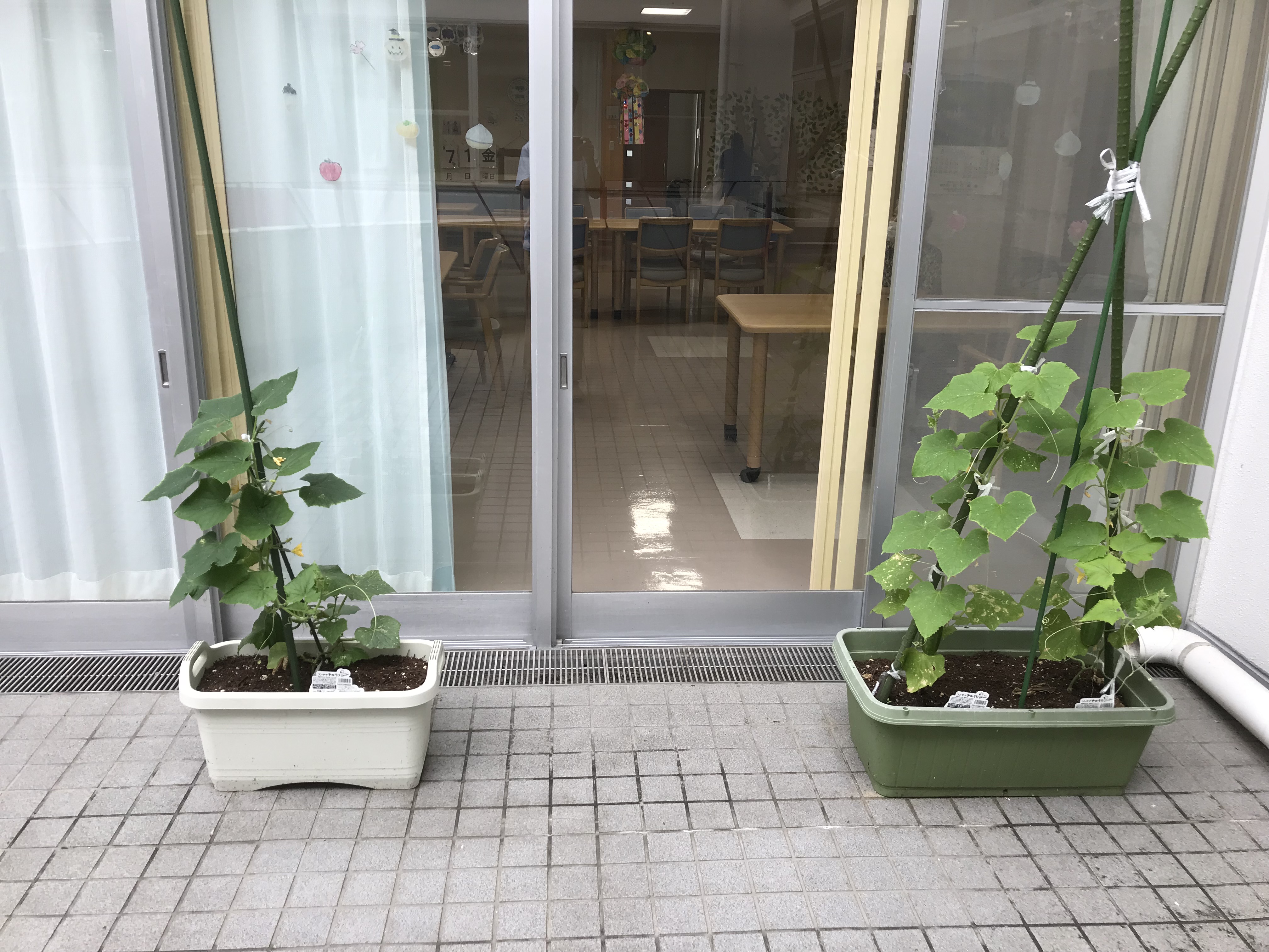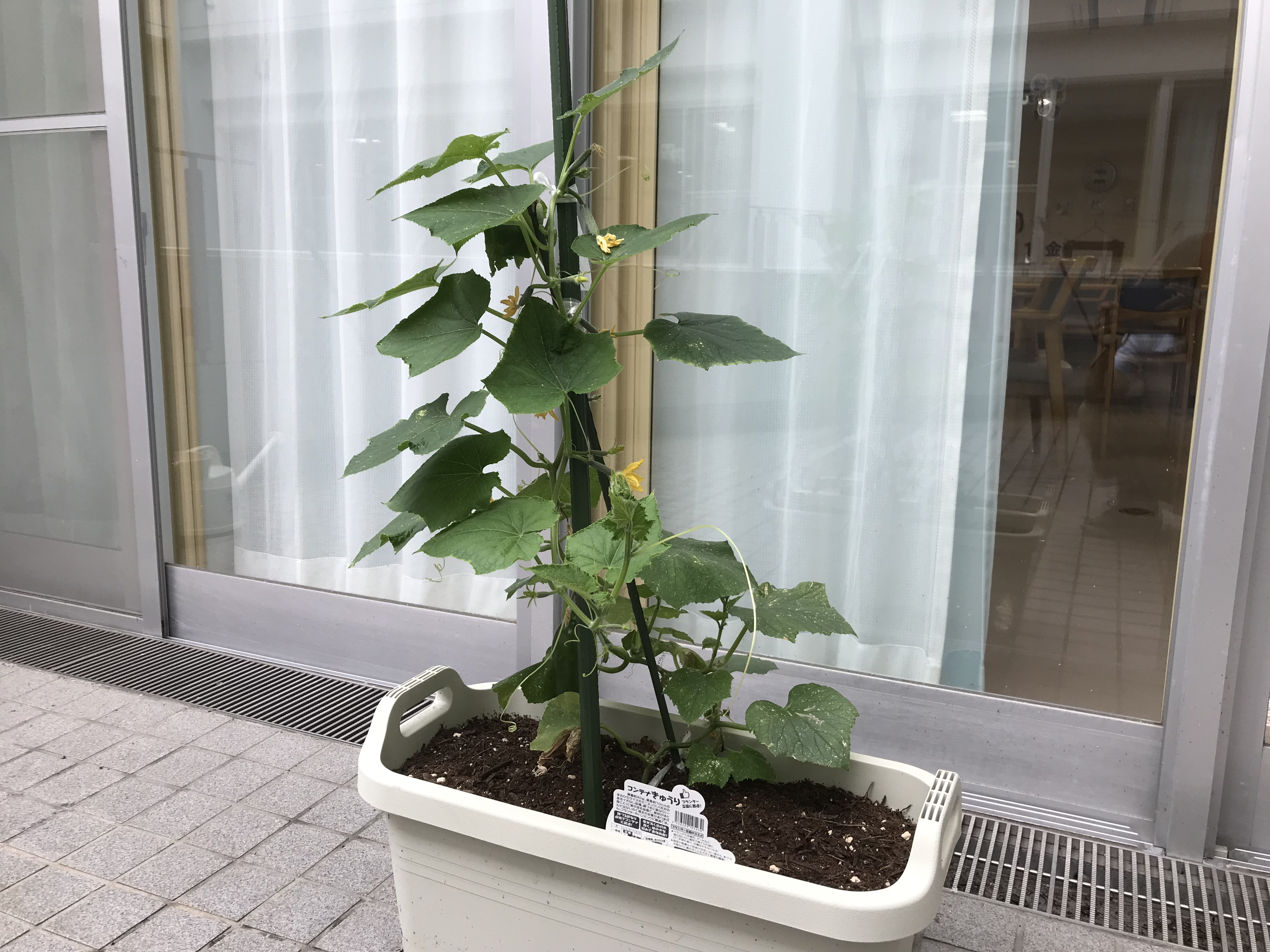 キュウリも順調に成長しています。先週5本収穫し、利用者の方と美味しく頂きました。