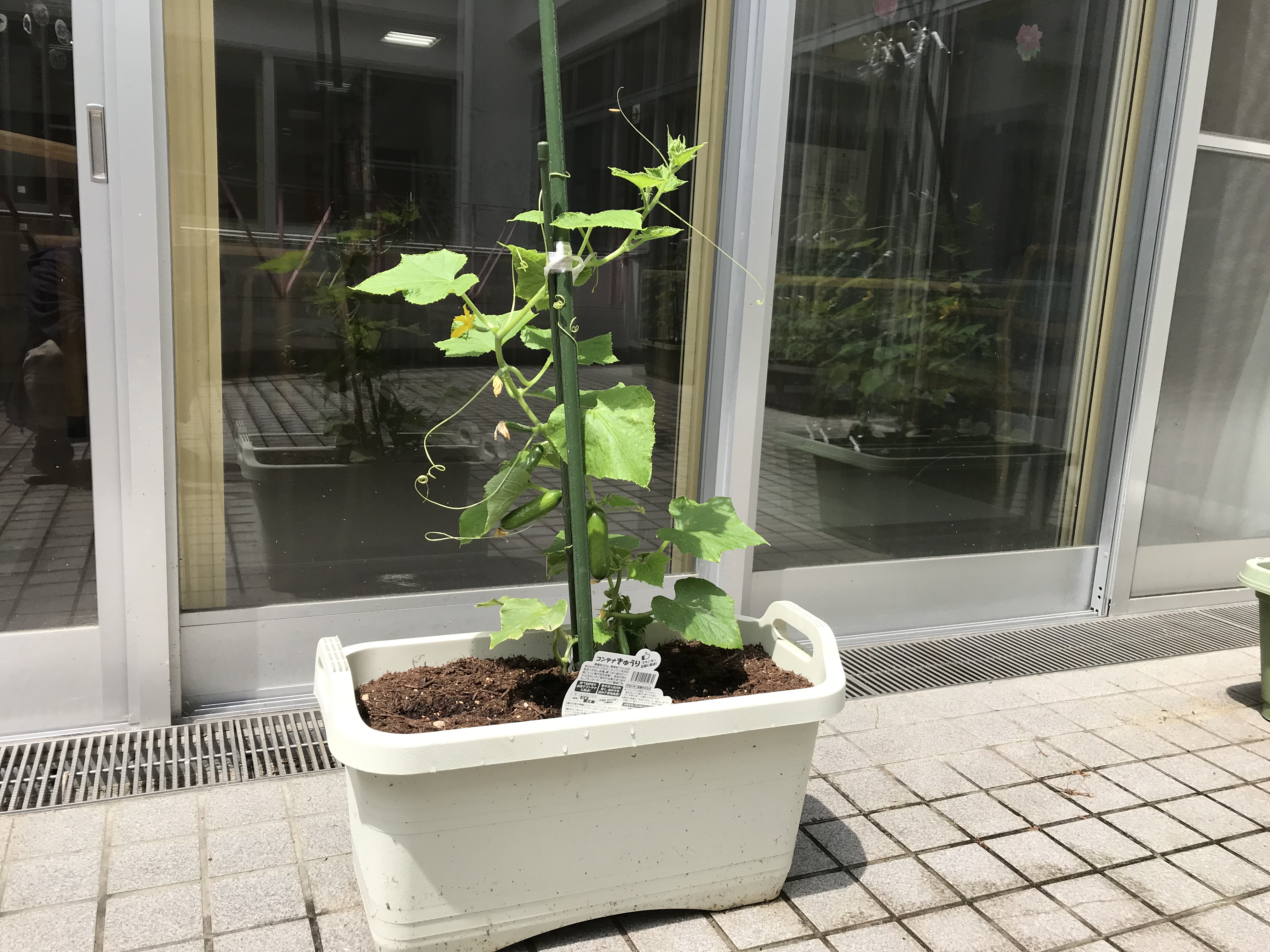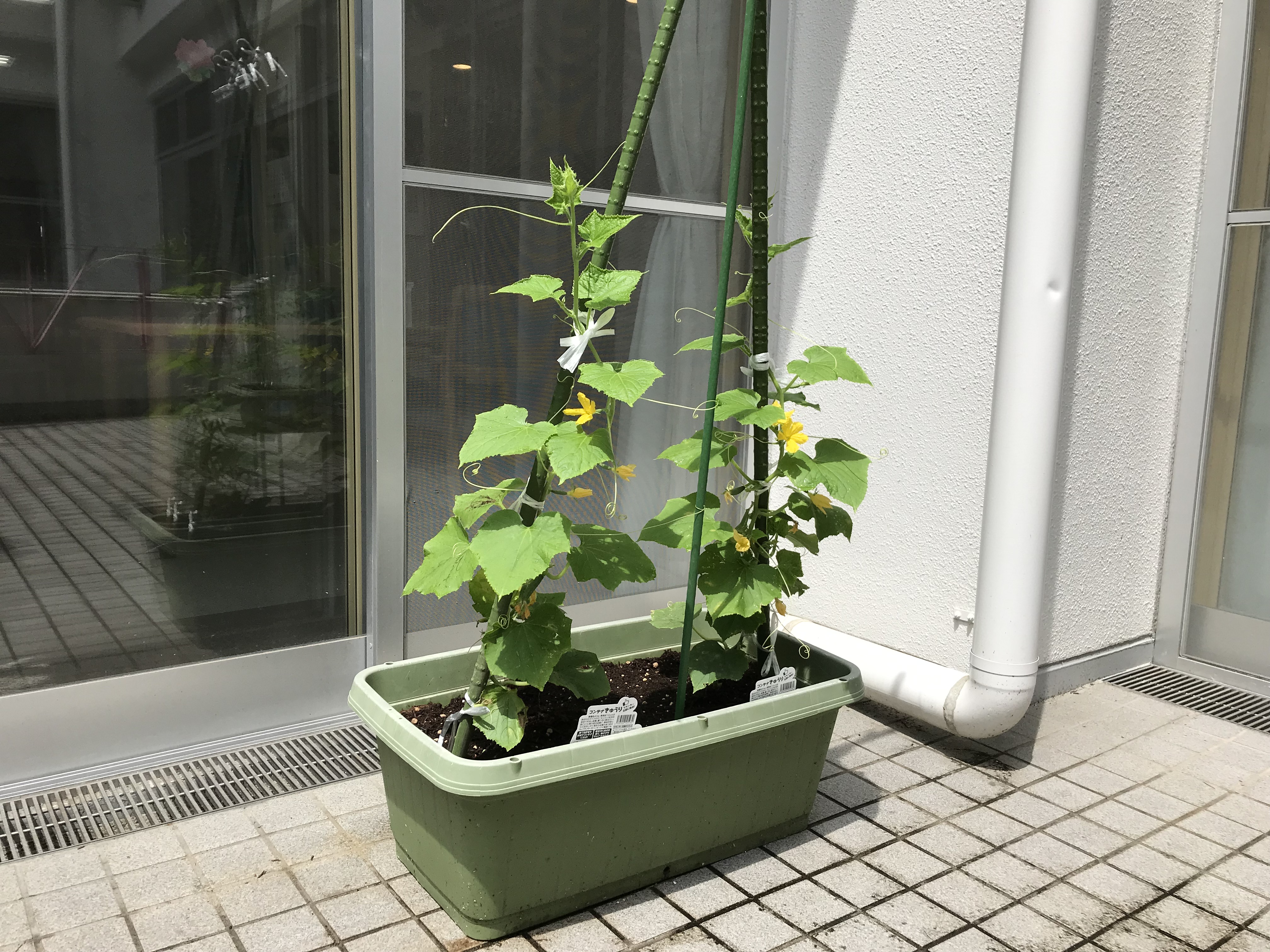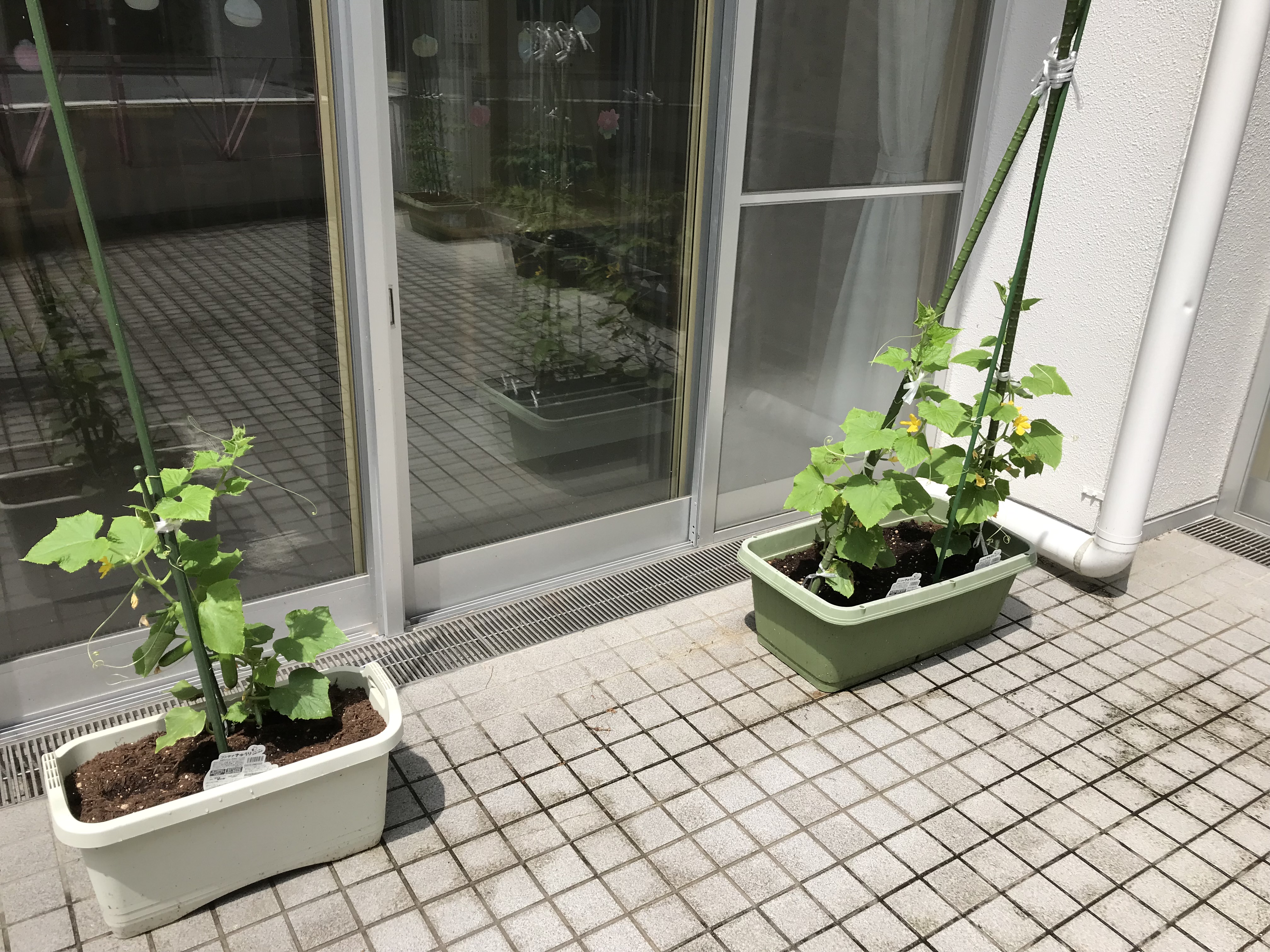 トマト・きゅうりは順調に成長し、実も大きくなってきました。