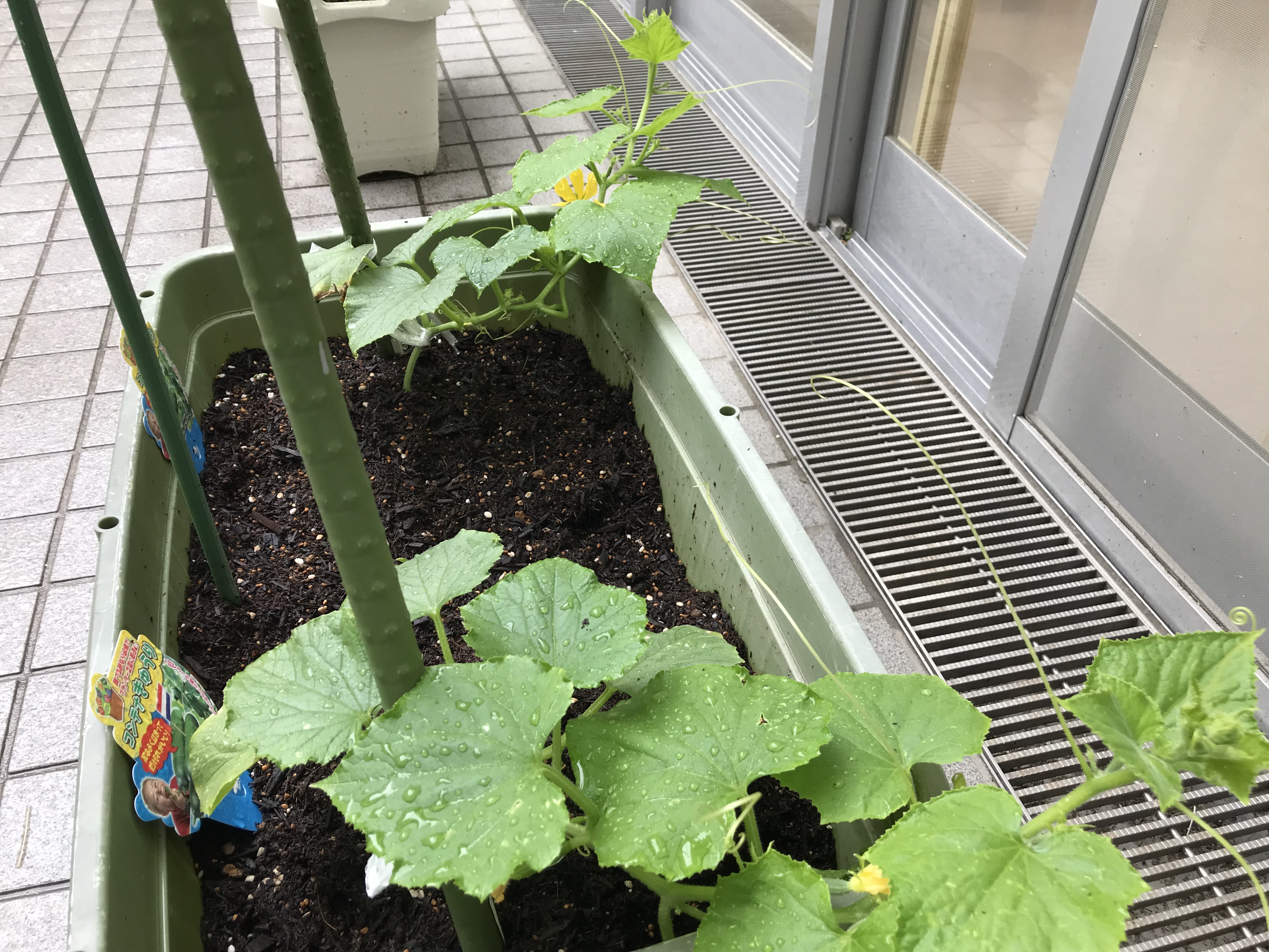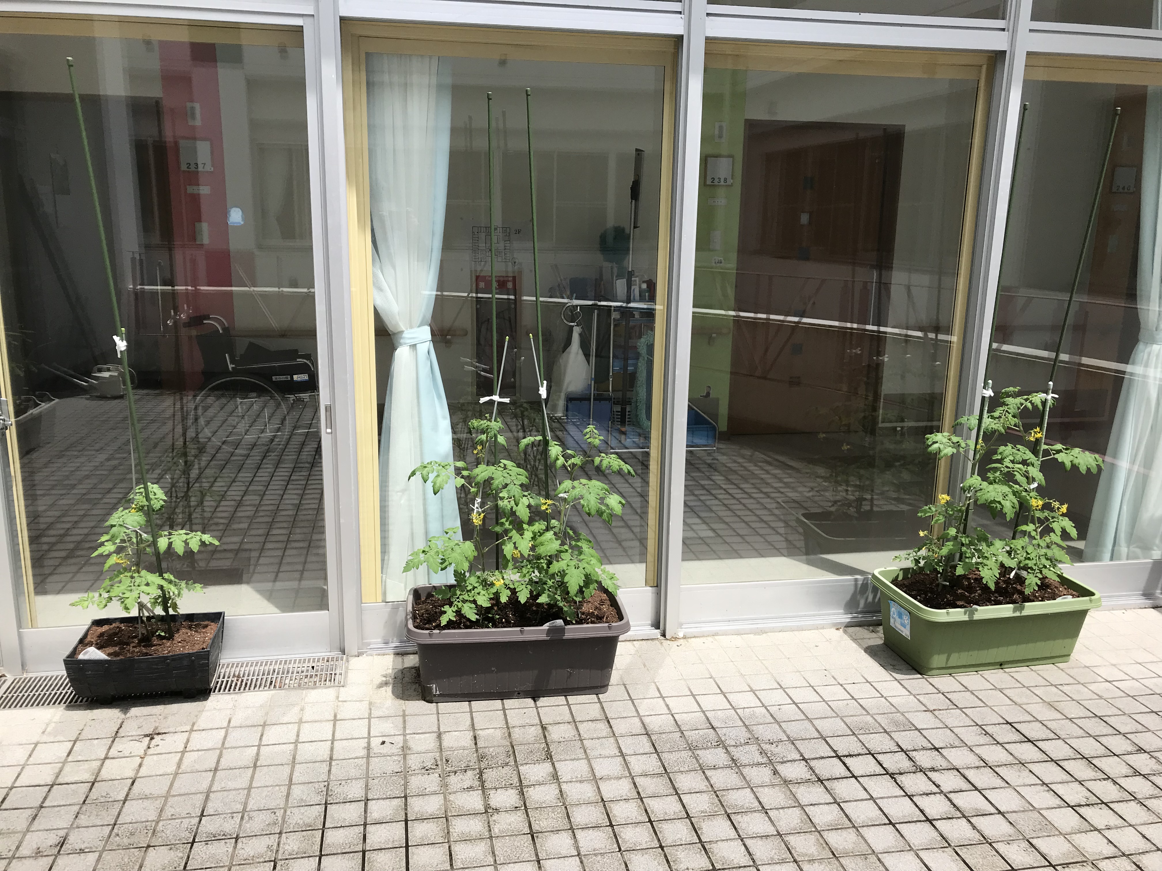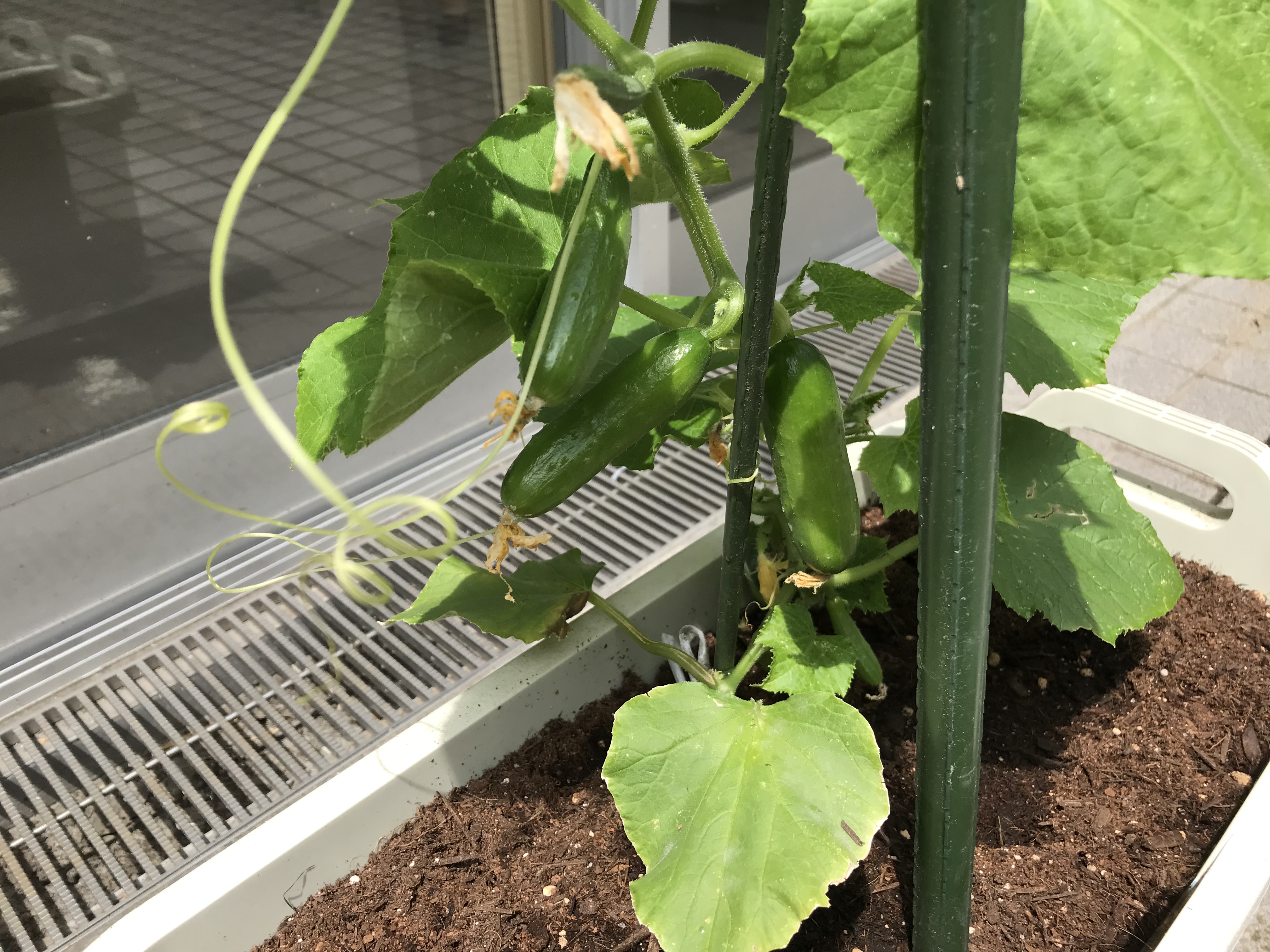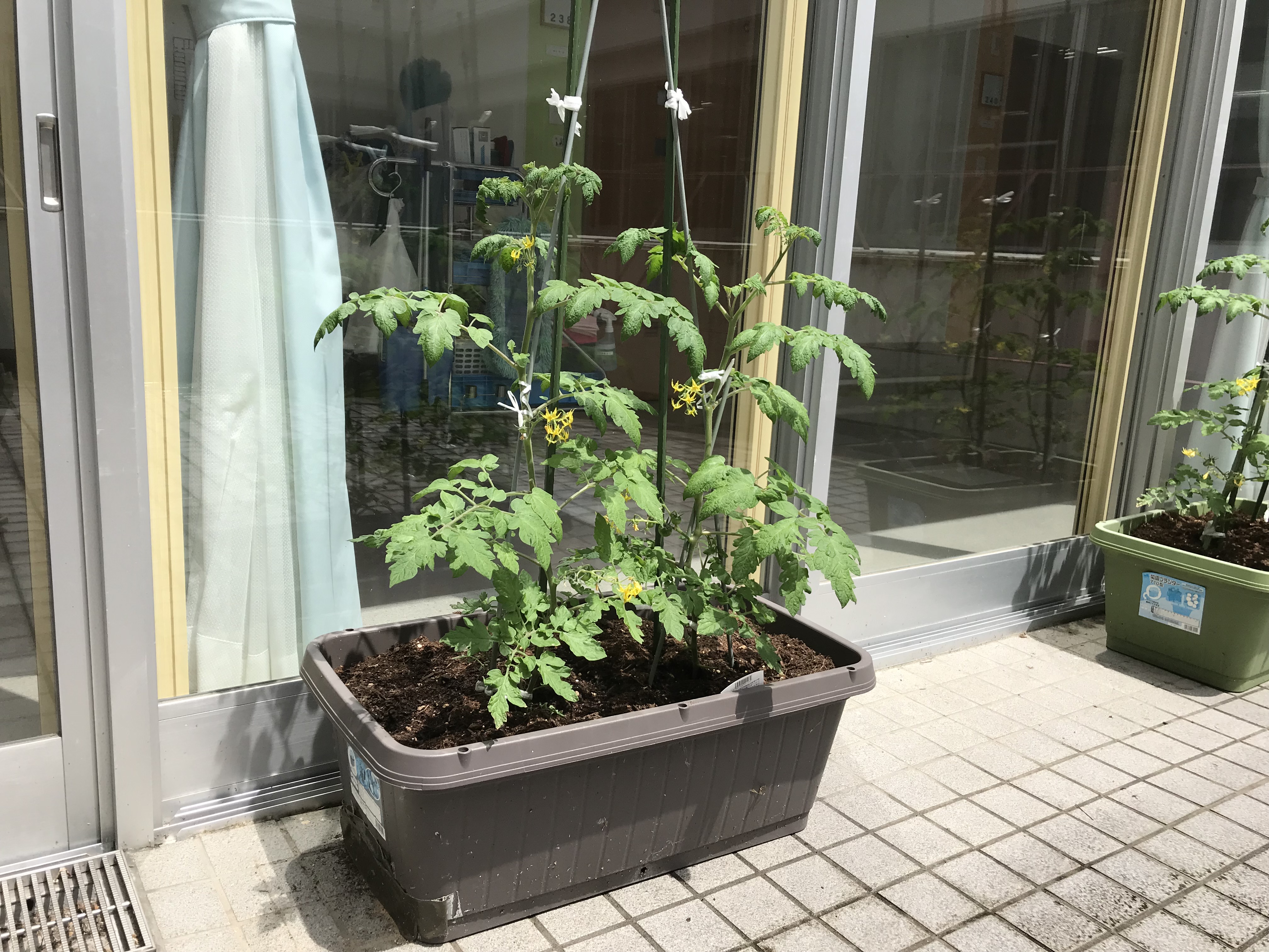 トマト・きゅうりは順調に成長し、実も大きくなってきました。